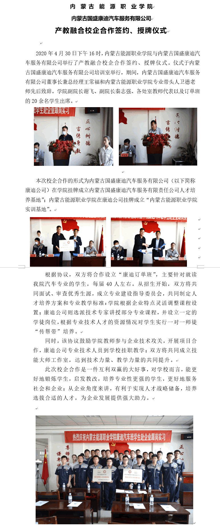 內(nèi)蒙古國盛康迪汽車服務(wù)有限公司與產(chǎn)教融合校企合作簽約、授牌儀式