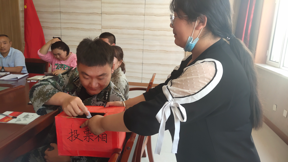 每一名黨員寫下并投出了自己的一票。由于預(yù)備黨員不具備選舉權(quán),本次與會的四名預(yù)備黨員同志分別擔任了數(shù)票、唱票、計票、監(jiān)票工作。最終選舉了劉仲德同志為黨支部先進黨務(wù)工作者,王永超同