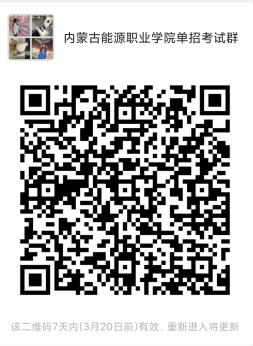 考生在完成網(wǎng)上填報志愿后,及時關注“內蒙古能源職院”官方微信,掃碼進入微信群領取《準考證》并繳納考試費。(繳費后自行放棄考試不予退費)