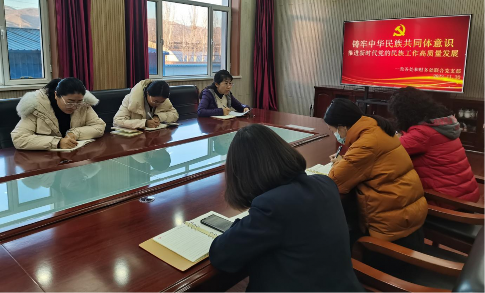 2023年12月1日教務處和財務處聯(lián)合黨支部召開了主題為:“鑄牢中華民族共同體意識推進新時代黨的民族工作高質量發(fā)展”的主題會議,本次會議由支部書記劉國華領學,支部全體成員參加學習。