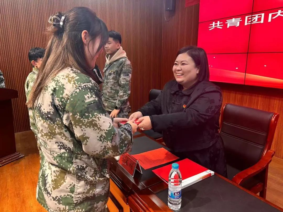 學(xué)院黨委副書記白亞楠、大專部負(fù)責(zé)人哈斯烏拉、輔導(dǎo)員老師代表吳凱英、白碧雪為新團員佩戴團徽、頒發(fā)團員證、團章,從佩戴上團徽的這一刻,新團員們更要明確自己肩負(fù)的責(zé)任,努力履行團員的義務(wù),挺膺擔(dān)當(dāng),為學(xué)院發(fā)展,社會進(jìn)步貢獻(xiàn)青春力量。